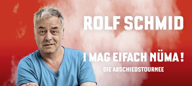 Mit seiner Abschiedstournee 2026 erfüllt Rolf Schmid sich und seinem Publikum den letzten grossen Traum: Noch einmal durchs Land ziehen, noch einmal alles geben, noch einmal die Leute zum Lachen bringen. «Danach freue ich mich, mehr Zeit mit meiner Familie, in der Natur und fürs Kochen zu haben», meint Rolf Schmid. «I mag einfach nüma» heisst sein Schlusspunkt. Eine unterhaltsame Mischung aus Rückblick, Vorschau und Chaos. Also Rolf Schmid wie man ihn kennt respektive kannte. Rolf Schmid: «Es ist für mich eine Ehre, meinem treuen Publikum nochmals richtig die Lachmuskeln zu strapazieren»