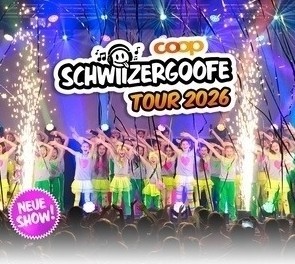 Die Schwiizergoofe sind mit zahlreichen Platz-1-Platzierungen in der Hitparade bei den Familien das beliebteste Musikprojekt des Landes. Ihre Konzerte sind Kinderparty, Musical und Familienfest in einem. Knapp zwei Stunden zum Mitsingen, Mittanzen und Mitlachen für Klein und Gross. Für die jüngeren Konzertbesucher gibt es auch auf der kommenden Tour einen VIP-Bereich vor der Bühne mit genügend Platz zum Singen und Tanzen.
